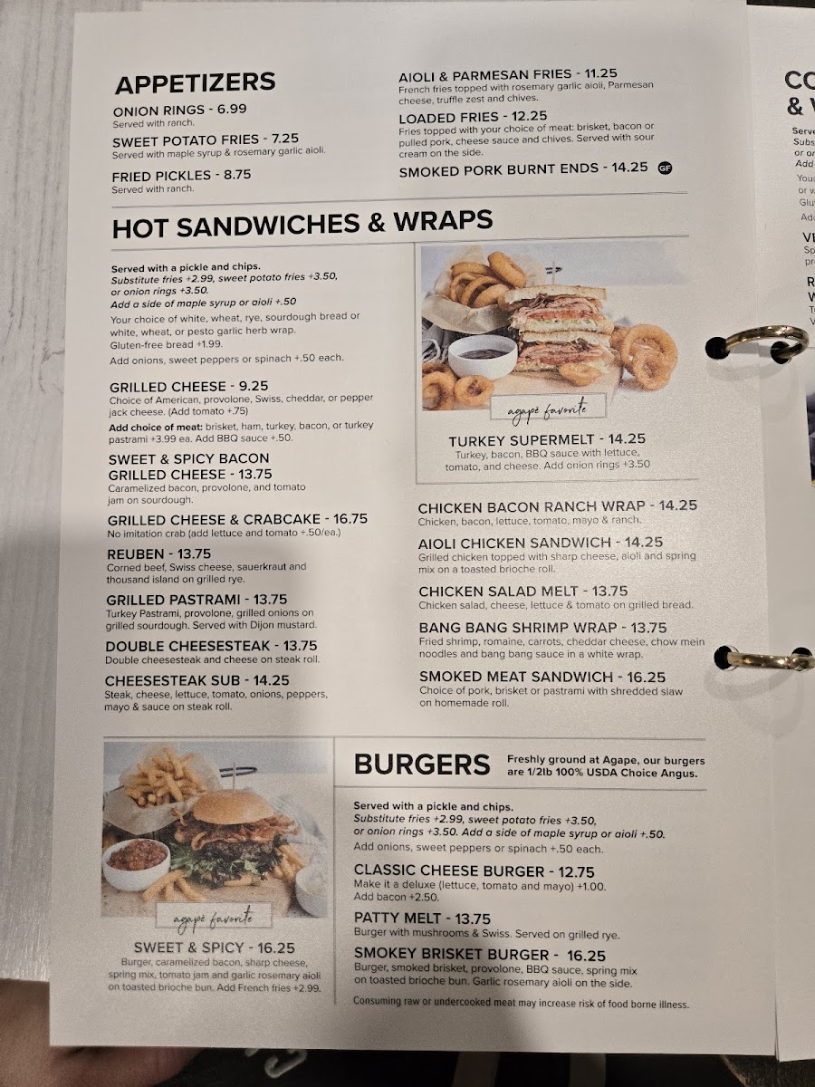 Welcome to Agapē Cafe & Grille, a culinary gem nestled in Ronks, PA, where love for food transcends the dining experience. This inviting eatery boasts an impressive menu that showcases flavorful offerings, including the standout Smoked Pork Burnt Ends for just $19.99, and enticing charcuterie boards perfect for sharing.